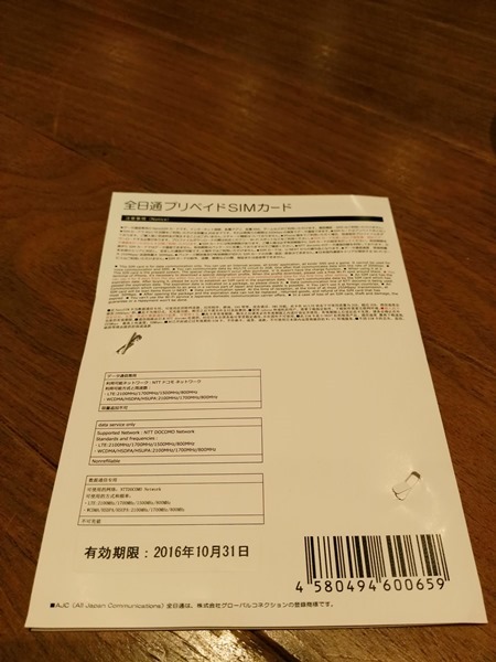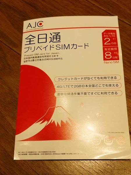 包裝相當簡單 Pre-paid SIM card… 這日文是這個意思