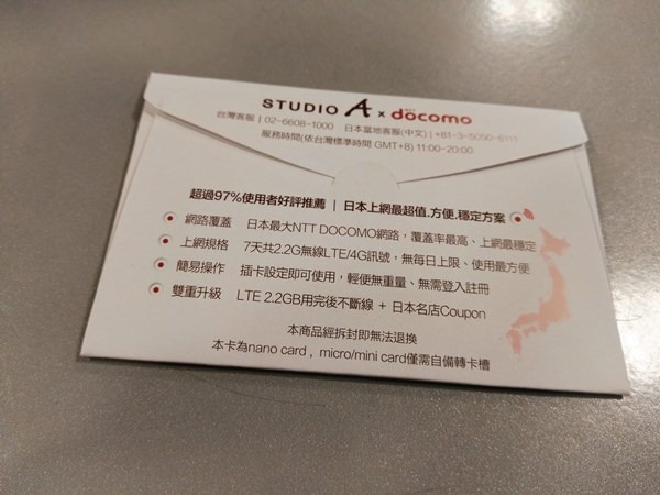 就是這麼簡單的一張咖片 Nano SIM一張